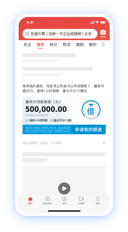 户,图文广告(大图、小图、组图)无缝融入资讯流,降低用户反感
