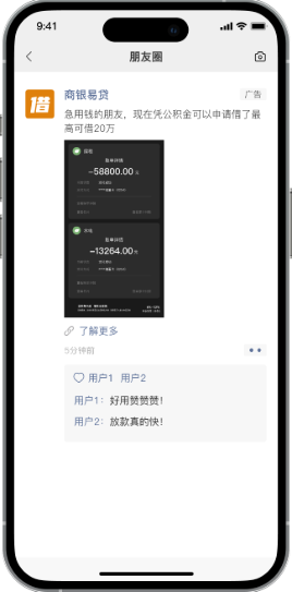 通过用户行为、兴趣、地域等标签精准触达目标金融需求群体。优质的用户群体,是金融产品(如信贷、抵押)的目标用户